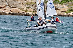 Optimist C hade egen mindre bana väldigt nära bryggan och då prognosen var ökande seglade de alla fyra race innan lunchpausen., vilket var uppskattat av både barn och föräldrar.